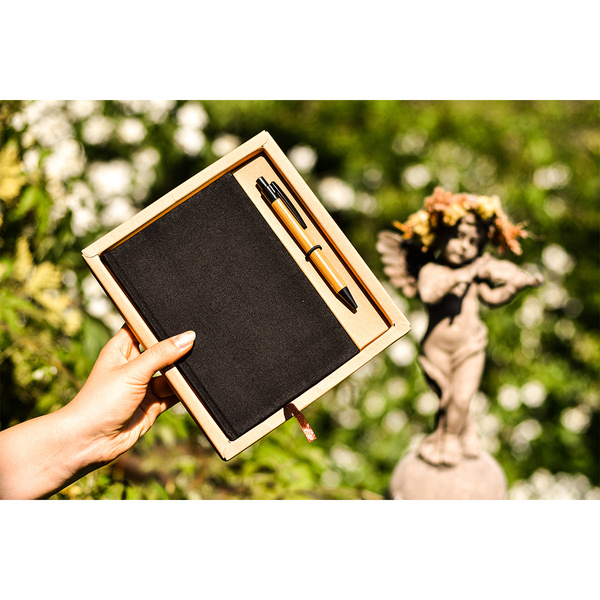 • Notes w lnianej, drukowanej okładce (90 kartek w kratkę, 80 g/m2).