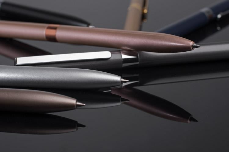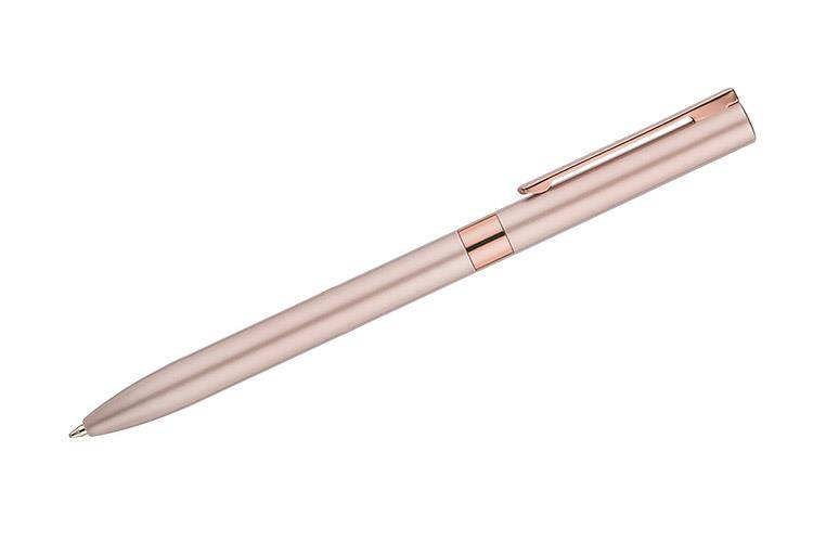 Długopis wykonany jest z metalu z wykończeniami chromowanymi lub złoconymi i posiada mechanizm typu twist.