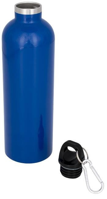 Butelka Atlantic izolowana próżniowo. Butelka Atlantic izolowana próżniowo zbudowana z podwójnych ścianek, z zakręcaną pokrywką. Utrzymuje wysoką temperaturę napoju przez 5 godzin, a niską przez 15 godzin. Karabinek nie nadaje się do wspinaczki. Pojemność wynosi 530ml. Ze stali nierdzewnej.