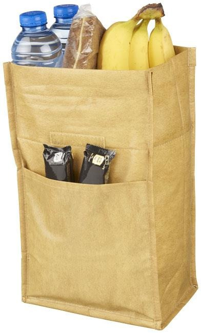 Brązowa torba termoizolacyjna z fakturą torby papierowej.