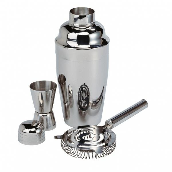 - Zestaw zawiera shaker, kieliszek do odmierzania i cedzak z dwoma podpórkami.