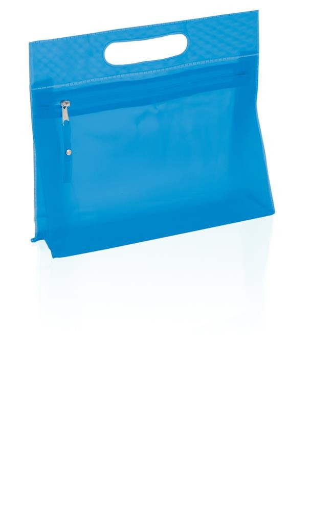 Kosmetyczka z główną przegrodą na zamek błyskawiczny i wyciętym uchwytem.