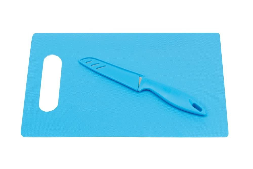 Deska do krojenia SUNNY zawiera nóż z ostrzem ze stali nierdzewnej z otwieraczem do butelek i oczkiem do zawieszania w uchwycie, osłona na ostrze, deska łatwa do zawieszenia