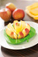 Nóż do jabłek SPLIT z plastikowym uchwytem w kształcie jabłka i ostrzami ze stali nierdzewnej.