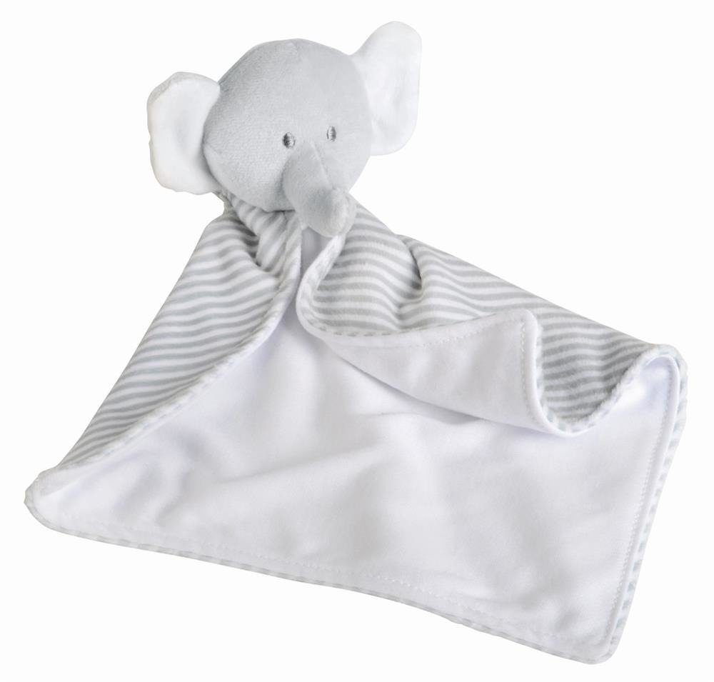Słoń przytulanka DOMI z miękkiego materiału, bez nadruku, odpowiedni dla dzieci poniżej 3 roku życia.