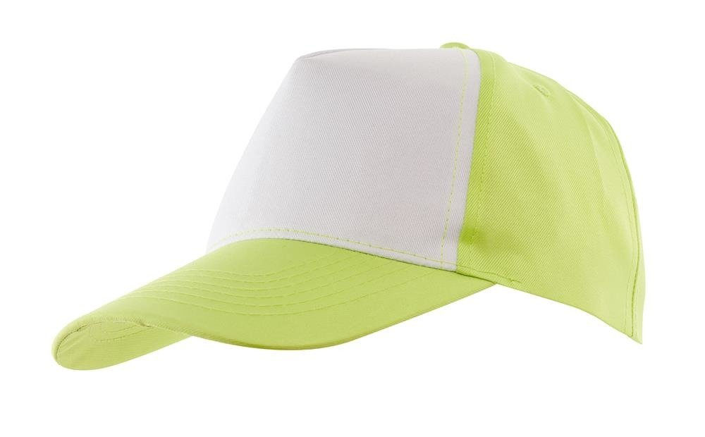 5 segmentowa czapka SHINY , 2-kolorowa z łatwym do nadrukowania wzmocnionym panelem przednim, 4 obszywane wywietrzniki, regulowana zapięciem na rzep z tyłu.