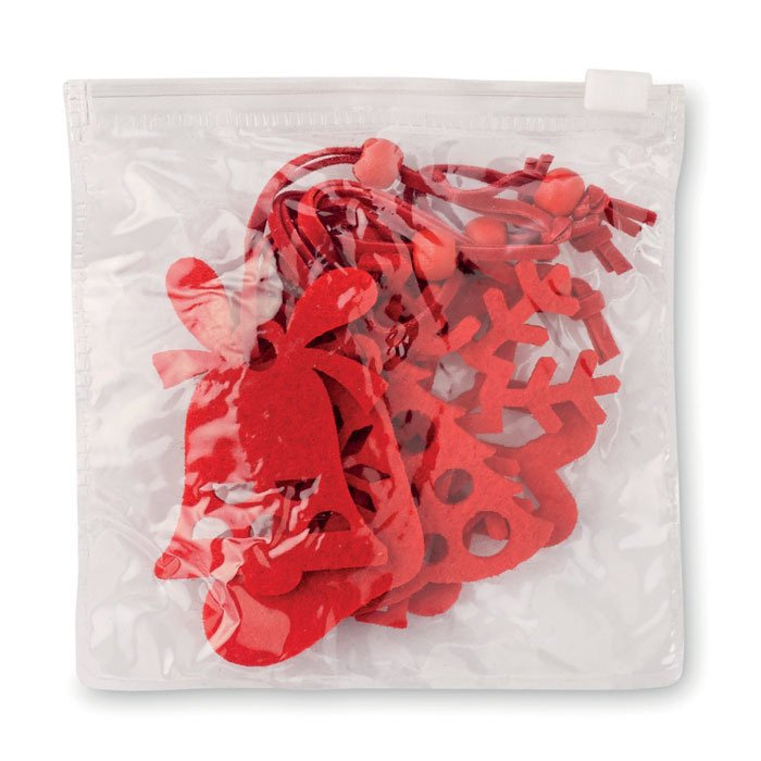 - Komplet czerwonych filcowych zawieszek na choinkę.