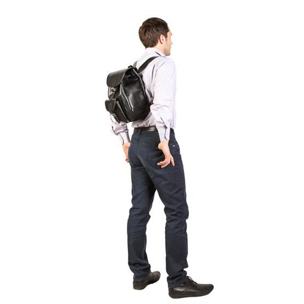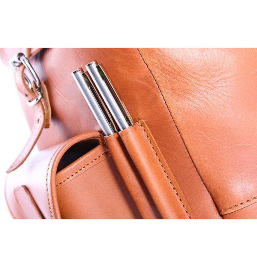 Plecak skórzany unisex w stylu vintage dla miłośników prawdziwej klasyki. Jednokomorowy plecak zapinany na tradycyjne klamry. Regulowane i poszerzane szelki poprawiają wygodę w codziennym użytkowaniu. Przednia kieszeń na drobiazgi pomieści smartfon, portfel itp.. Obok kieszonki znajdują się dwa miejsca na długopisy, aby zawsze były pod ręką.
