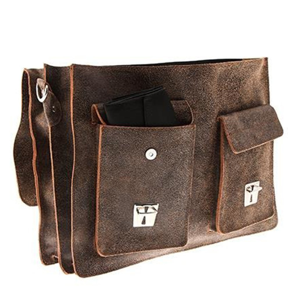 Dwukomorowa torba UNISEX z odpinanym pasem na ramię, wykonana w stylu Old School ze specjalnie postarzanej naturalnej skóry. Polecana dla aktywnych obojga płci. Dodatkową cechą jest jej funkcjonalność oraz oryginalny wygląd. Torbę można nosić w ręku jak i na ramieniu. Torba posiada wiele kieszeni i schowków, które pomieszczą laptop o wym. 27 x 36 cm, segregator lub skoroszyt A4 oraz inne drobiazgi takie jak portfel, smartfon itp.