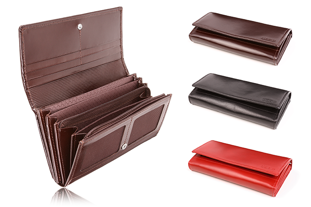 Bardzo pakowny portfel wykonany z naturalnej skóry galanteryjnej. Dostępny w trzech kolorach, dzięki czemu dopasowanie go do ulubionej palety barw nie będzie stanowić problemu. Duża ilość przegródek, wydzielonych kieszeni i miejsc na dokumenty, czy inne drobiazgi sprawia, że utrzymanie porządku wewnątrz portfela nie będzie stanowić problemu, nawet jeżeli będzie wypełniony po brzegi.