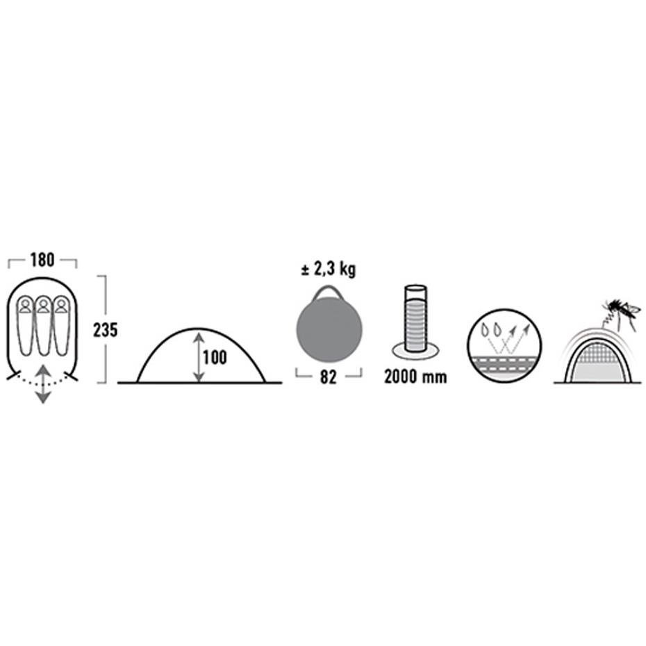 Samorozkładający się namiot High Peak Vision 3 zapewnia ogromną oszczędność czasu, dzięki czemu dłużej możesz czerpać radość z błogiego spokoju na łonie natury i towarzystwa przyjaciół. Łatwy w obsłudze trzyosobowy namiot jest świetnym rozwiązaniem na spontaniczny wyjazd za miasto lub letni festiwal w plenerze. Żywy odcień zieleni. Czerwone linki odciągające. Owalny kształt podłogi. Wyjście wyposażone w moskitierę. Wodoodporny, jednowarstwowy tropik.