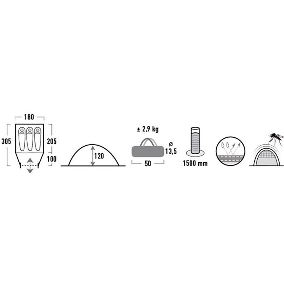 Praktyczny trzyosobowy namiot High Peak Ontario z niewielkim przedsionkiem doskonale sprawdzi się na krótki wyjazd. Stelaż z włókna szklanego w połączeniu z wodoodpornym materiałem tworzy kopułową konstrukcję. Tkanina mesh w strategicznych miejscach gwarantuje wentylację. Wzmocniona podłoga. Lekka konstrukcja i niewielkie wymiary po złożeniu.