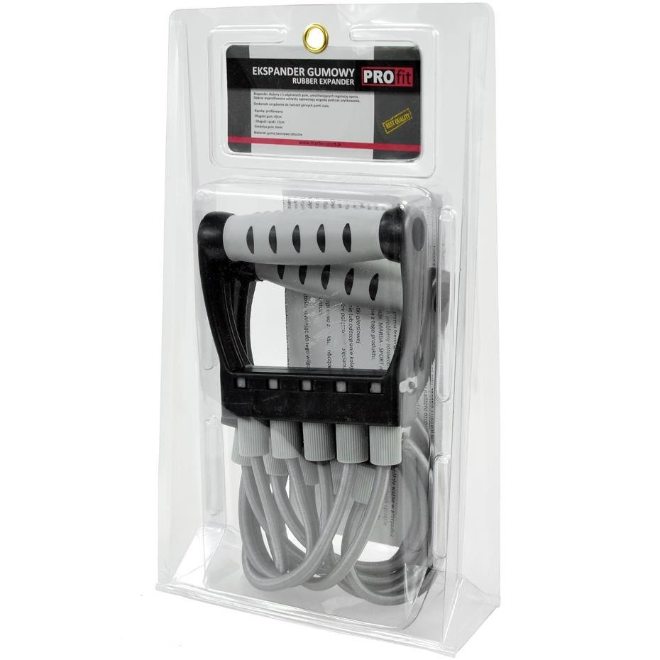 Ekspander złożony z pięciu odpinanych gum, umożliwiających regulację oporu.
