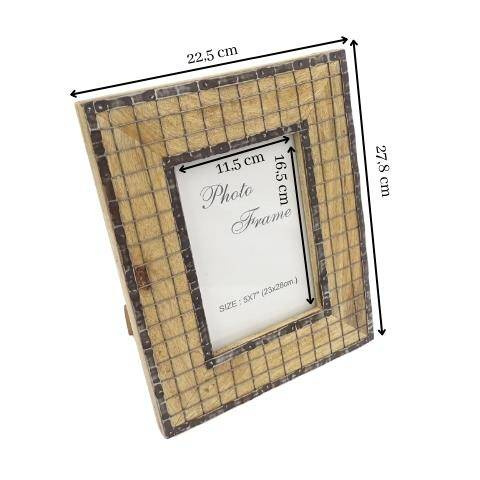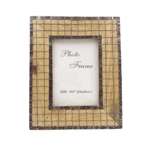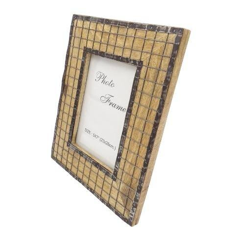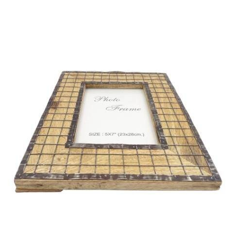 Ramka z naturalnego drewna mango. Inkrustacja - metalowa kratownica.