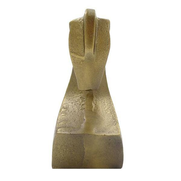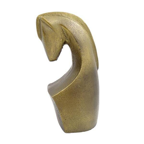 Figurka dekoracyjna Głowa konia Dante 22234-22 Wymiary: 22 x 13 x 11 cm Figurka metalowa - aluminium Kolor: mosiężny Niegdyś wierzono, że głowa konia odstrasza demony i przynosi szczęście. Dziś, w nieco innej odsłonie stanowi hippiczny element dekoracyjny, który nawiązuje do pasji domowników do tych szlachetnych stworzeń. Figurka dekoracyjna Głowa Konia Dante to elegancka ozdoba do salonu lub gabinetu w aranżacji klasycznej, retro bądź kolonialnej. Mosiężny kolor rzeźby pięknie współgra z czernią, granatem, bielą oraz zielenią ścian. Symboliczne przedstawienie głowy wierzchowca przywodzi na myśl szachowego skoczka. Jest to zatem doskonały pomysł na prezent dla szachisty, ale również sprawdzi się jako upominek dla miłośniczki koni bądź trofeum dla jeźdźca.