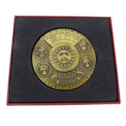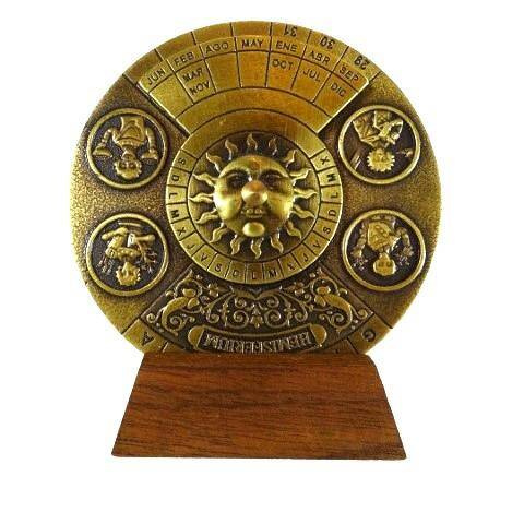 Mosiężny kalendarz wieczysty H27 na drewnianej podstawie