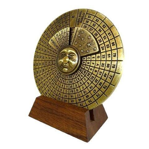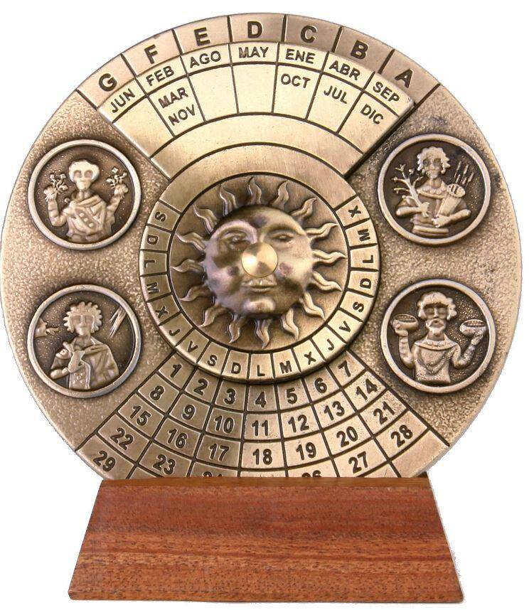 Powiedzmy, że chcemy sprawdzić jaki dzień tygodnia przypada na 2 marca 2019r. W tym celu odwracamy kalendarz na stronę buźki księżyca. Na ruchomym ringu wyszukujemy liczbę 20 i ustawiamy ją w jednej linii z liczbą 19, którą odnajdujemy na nieruchomej tarczy. Następnie przesuwamy na 19-tkę szczerbinę z napisem Letra Dominical, co umożliwia nam sprawdzenie jaka litera znajdowała się pod 20-tką w momencie, gdy 20 i 19 znajdowały się w jednej linii . W naszym wypadku jest to litera F.
