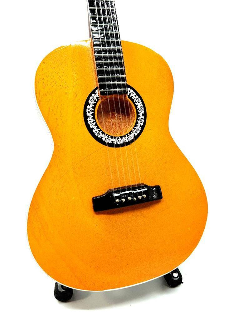 Mini gitara klasyczna świetnie sprawdzi się jako ciekawa, muzyczna dekoracja w domowy studio jako replika jednego z najpopularniejszych instrumentów świata.
