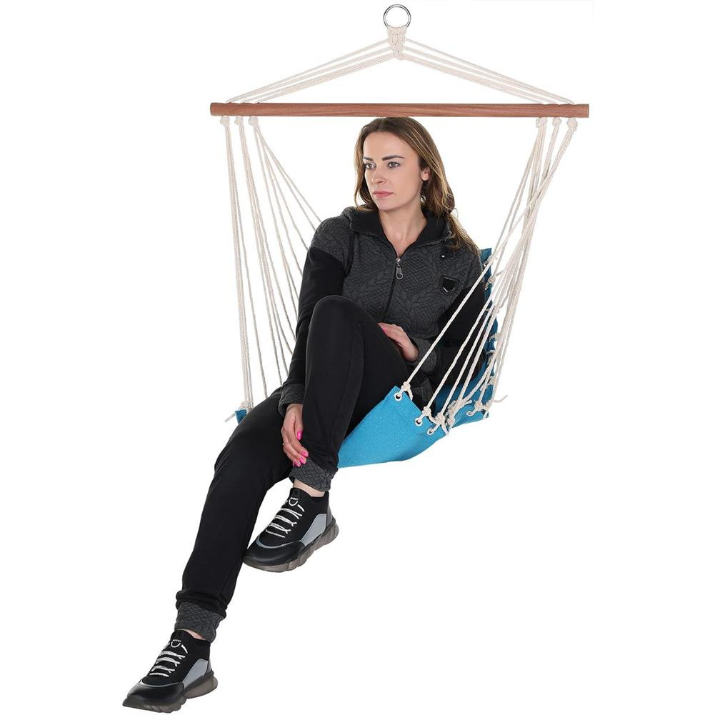 Wystarczy zamontować odpowiedni hak podpiąć hamak i rozpocząć relaks. Wysokiej jakości materiał, wszyte w oparcie i siedzenie poduszki z pianki i solidna konstrukcja, o nośności do 120 kg zapewnią Ci bezpieczeństwo oraz niezwykłą wygodę.