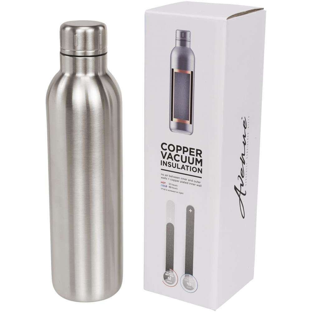Trwały bidon-termos izolowany próżniowo i miedzią, sprawia, że zawartość pozostanie zimna przez 48 godzin lub ciepła przez min 12 godzin.