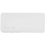 Powerbank 10000 mAh Spare. Powerbank Spare zawiera akumulator litowo-jonowy klasy A o pojemności 10000 mAh i latarkę, która może być używana w nocy. Pozwala na jednoczesne ładowanie maksymalnie trzech urządzeń z maksymalną mocą 5V / 2.1A (wyjście 1: 5V / 1A, wyjście 2: 5V / 1A i wyjście 3: 5V / 2.1A). Cztery niebieskie wskaźniki LED pokazują pozostałą pojemność baterii powerbanku. Zawiera kabel ładujący USB na Micro USB. Zapakowany w białe pudełko upominkowe Avenue. Plastik ABS.