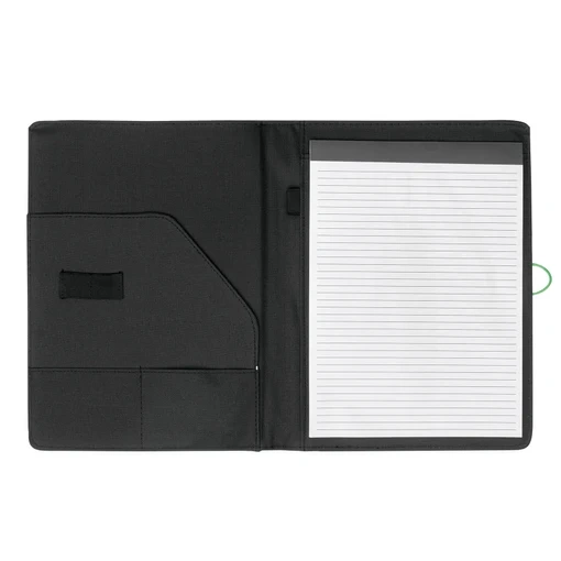 Zawiera notes, pętelkę na przybory do pisania, różne wsuwane kieszenie, metalowy haczyk z kolorową gumką do zamknięcia.