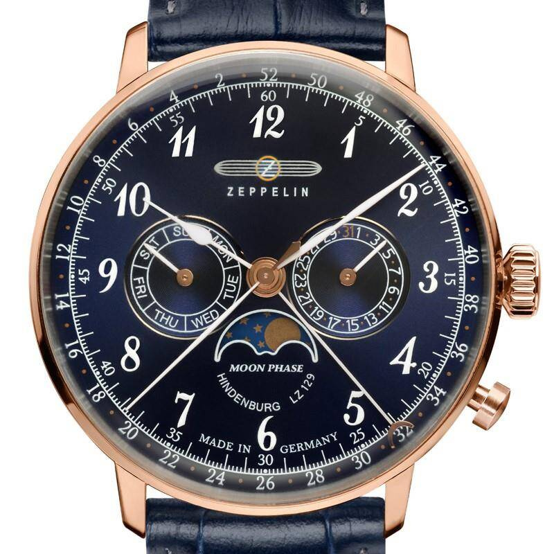 Nowa kolekcja Hindenburga emanuje ponadczasowym urokiem w stylu retro dzięki precyzyjnie opracowanym tarczom. Ciekawie złożone elementy, takie jak wyświetlacz fazy księżyca i wysoka jakość wykonania podkreślają bezkompromisowe standardy jakości tych zegarków.