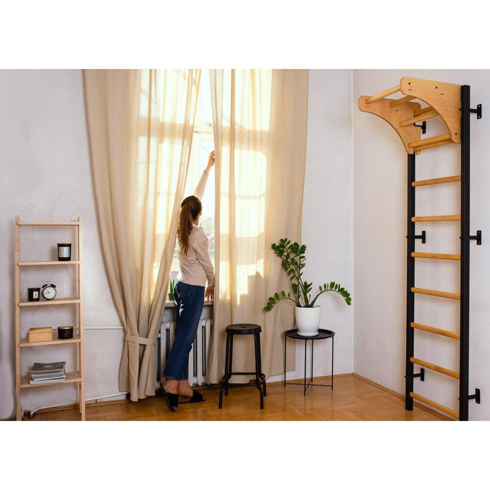Drabinka z drewnianym drążkiem do podciągania powstała w wyniku połączenia najwyższej jakości drewna bukowego i metalu. Jest to starannie wykonany produkt, dzięki któremu cała rodzina może zadbać o kondycję oraz zdrowie. Konstrukcja pozwala na zamontowanie drabinki w każdym pomieszczeniu, nie zajmuje ona bowiem wiele miejsca. Drabinka doskonale wpasowuje się do tradycyjnych, skandynawskich oraz rustykalnych wnętrz. Wielofunkcyjna drabinka gimnastyczna jest modelem z którego mogą korzystać zarówno dzieci jak dorośli. Drabinka dopuszcza do wykonywania ćwiczeń osoby o wadze sięgającej nawet do 120 kg. Metalowo – drewniana drabinka gimnastyczna z drewnianym drążkiem do podciągania daje nam możliwość pracy nad naszą sprawnością fizyczną bez konieczności wychodzenia z domu. Drabinka dostarcza dzieciom ruchu i zabawy. Jest to świetny sposób na spędzanie wolnego czasu w domu w przypadku niesprzyjającej pogody.