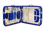 Łóżko, wraz z dodatkami, które mieszczą się wewnątrz, składa się do formy walizki zamykanej na klamry.