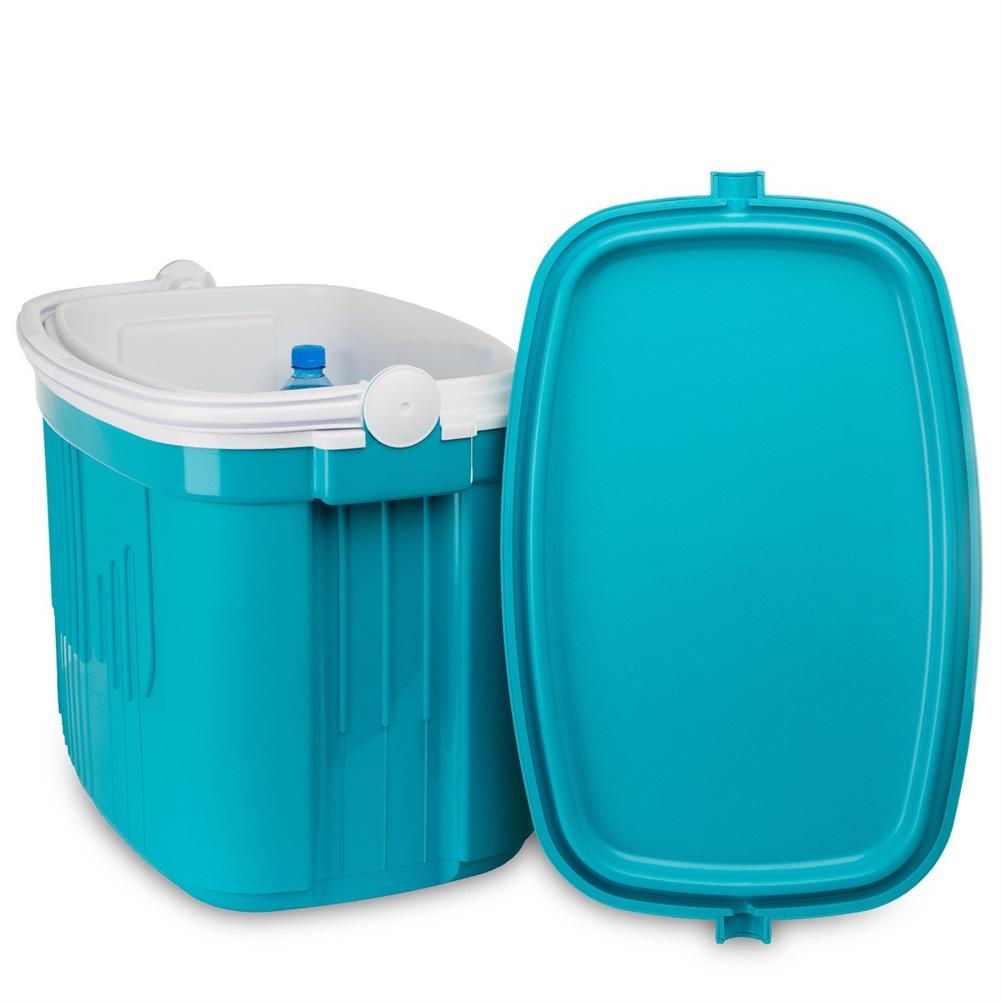 Rodzinna lodówka turystyczna na wkłady, o dużej pojemności. Bardzo lekka. Mieszczą się 2L butelki. Wyprodukowana z materiałów o najwyższej jakości, gwarantujących wytrzymałość i trwałość. Bardzo dobra izolacja wiadra i pokrywy, utrzymuje niską temperaturę, nawet w gorące letnie dni zapewnia świeżość przechowywanych produktów.