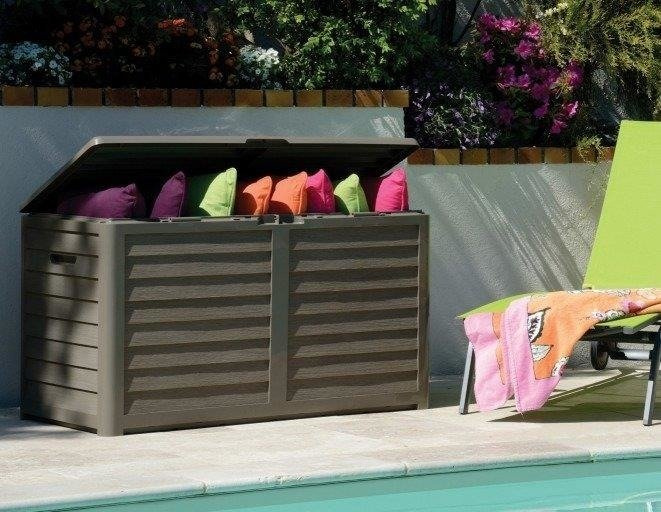 Idealne rozwiązanie do przechowywania narzędzi ogrodniczych, zabawek dziecięcych, poduszek lub kocyków, których używamy w ogrodzie.