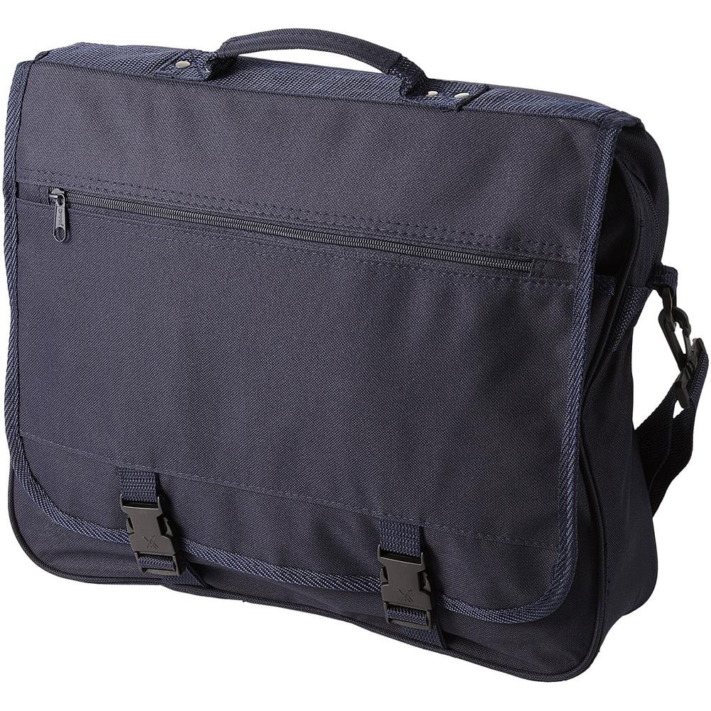 Torba wystawowa z regulowanym pasem na ramię oraz klapą zapinaną na sprzączki.