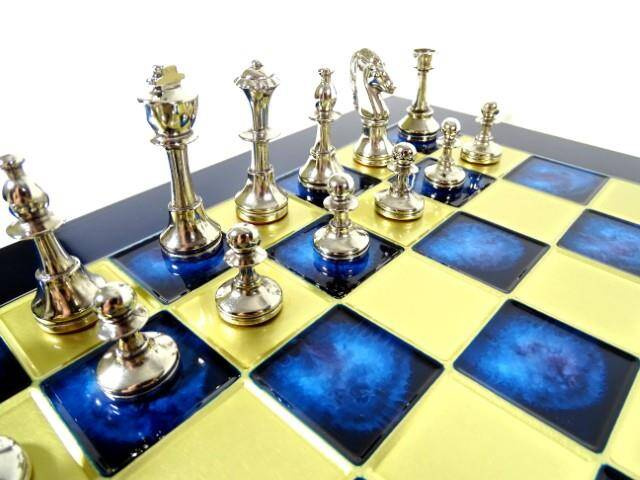 Ekskluzywne, duże klasyczne szachy metalowe Stauton S34; 36x36cm