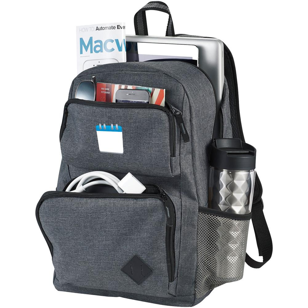 - Główna przegroda jest zapinana na zamek i posiada wyściełaną kieszeń na laptop 15.6" oraz kieszeń na tablet i inne akcesoria