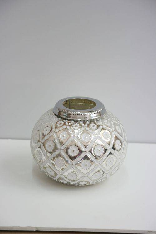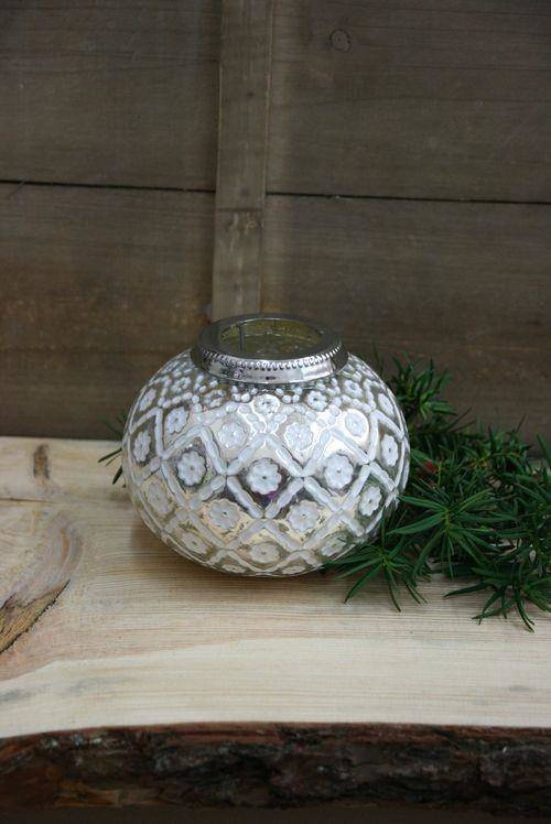 Lampion biało-srebrny,zdobiony kwiatkami.