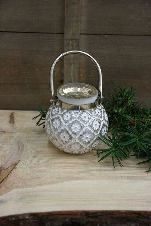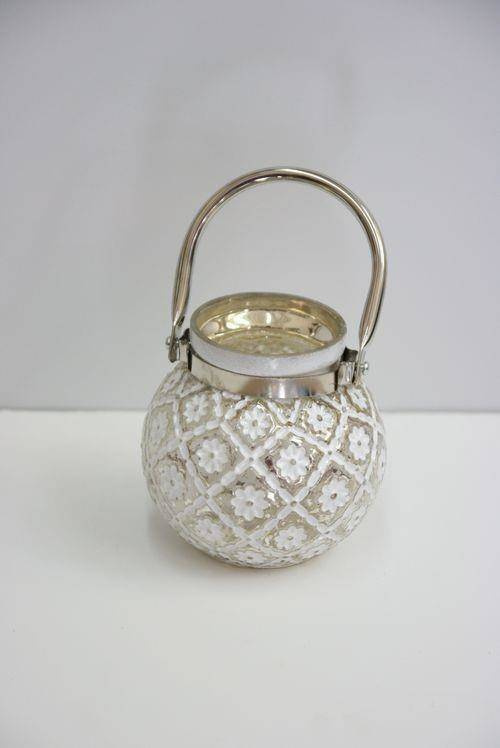 Lampion w kolorze biało-srebrnym, z uchwytem.
