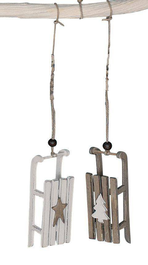 Komplet 2 świątecznych zawieszek w kształcie saneczek.