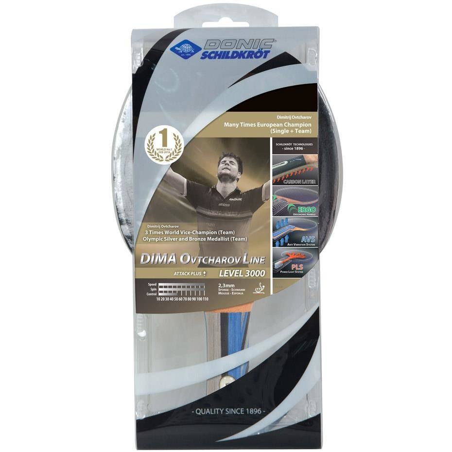 Rakietka do ping ponga Donic Ovtcharov 3000 przeznaczona dla zaawansowanych graczy ofensywnych. Wykonana z najtwardszego drewna węglowego 5CC. Pozwala połączyć kontrolę z ogromną prędkością. Zapewnia twardość i sztywność . Mocna gąbka pomiędzy gumą a drewnem generuje wysoki poziom mocy. Uchwyt ERGO z zaokrąglonym, gładkim wykończeniem jest wygodniejszy w trzymaniu. Ta konstrukcja sprawia, że rakietka jest lżejsza. Wbudowany system AVS (system antywibracyjny) pomiędzy ostrzem a uchwytem zmniejsza wibracje i uderzenia.