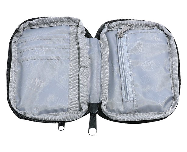 Dzięki zastosowanemu ujednoliconemu rodzajowi klamer, kieszeń można przymocować do wszystkich szkolnych teczek LEGO, a pętli można na przykład użyć jako pętelki na klucze.