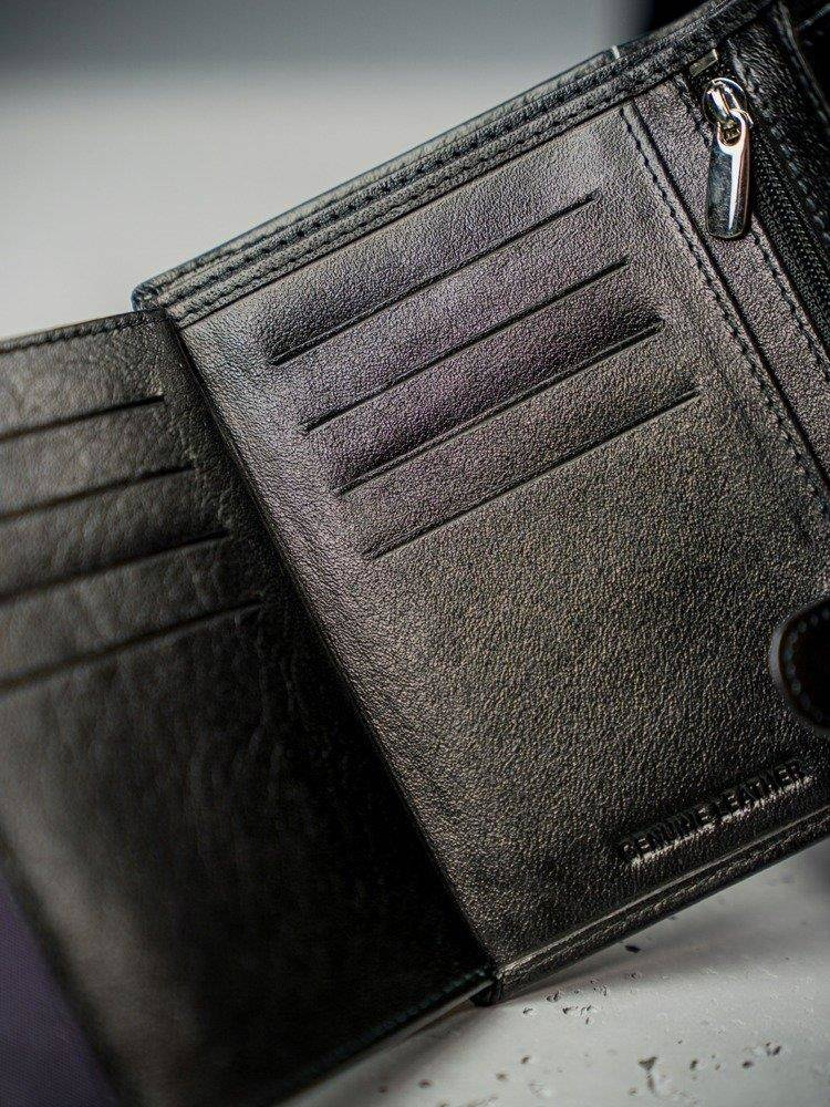 Elegancki męski portfel o klasycznym wyglądzie. Dzięki przemyślanemu rozmieszczeniu kieszeni i miejsc na karty, pomieści wszystkie niezbędne dokumenty i pieniądze.