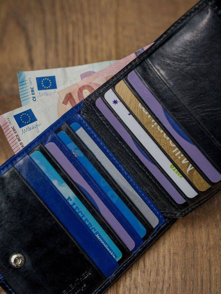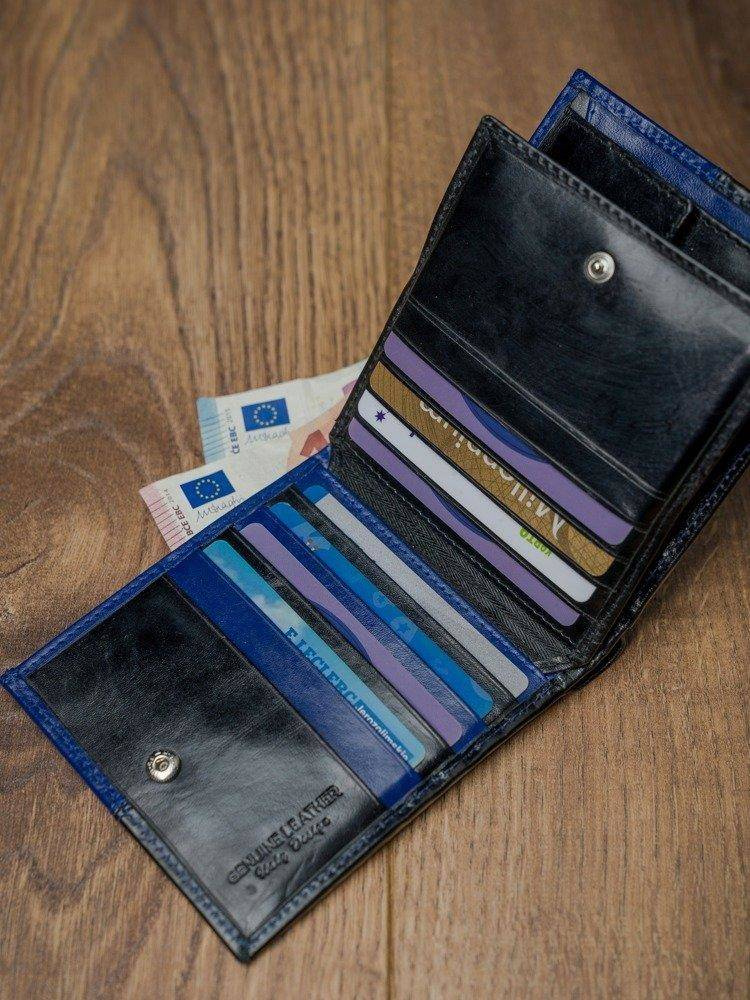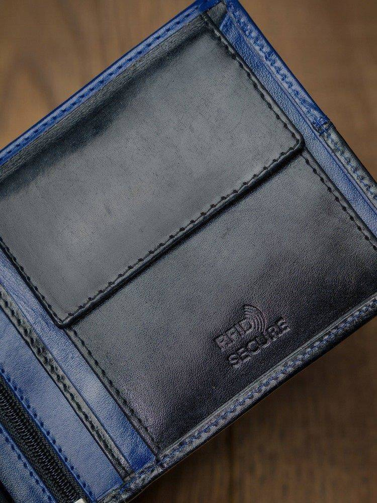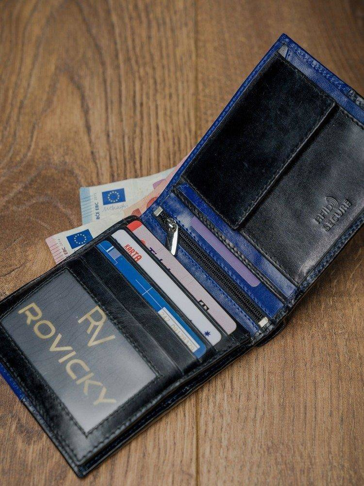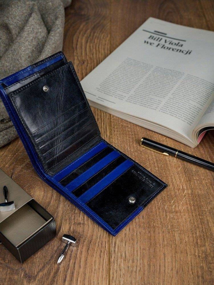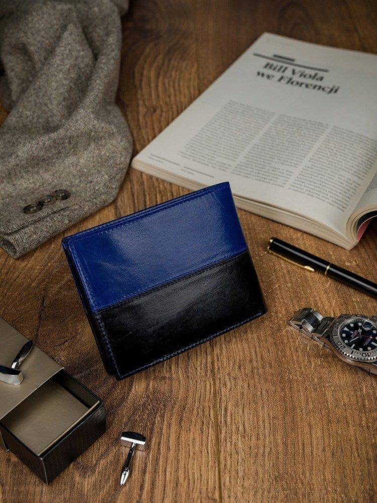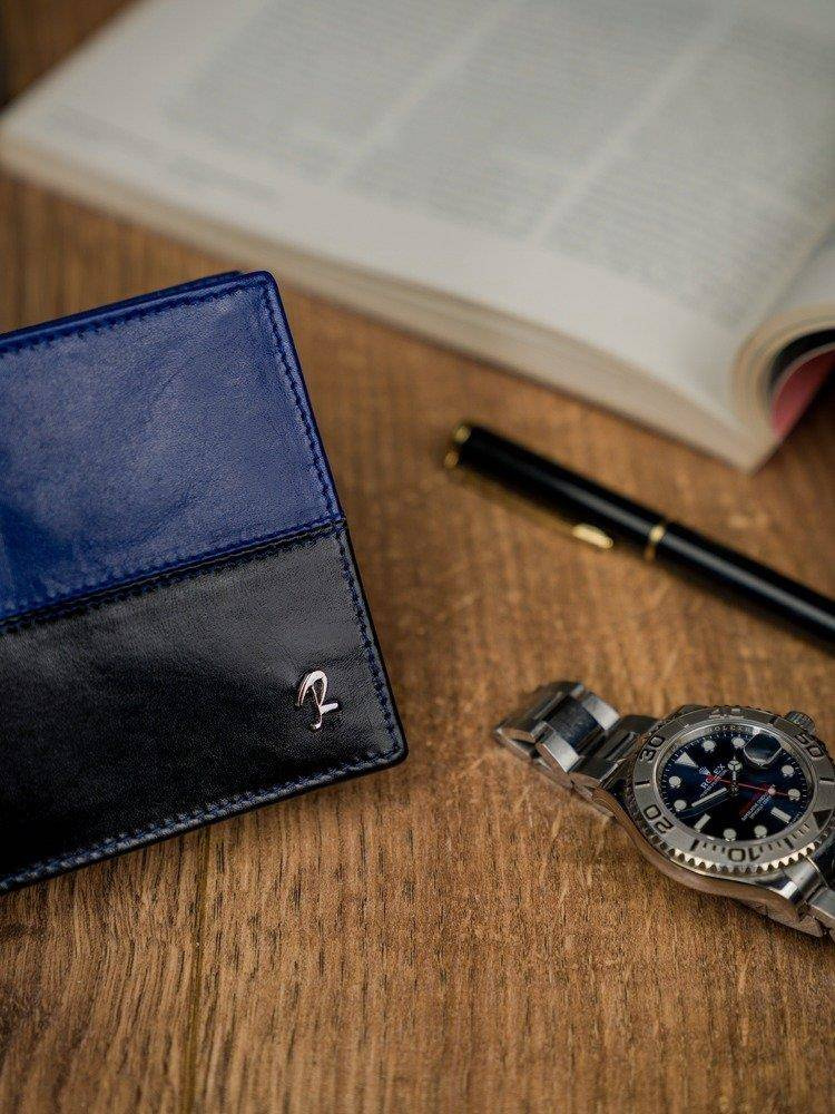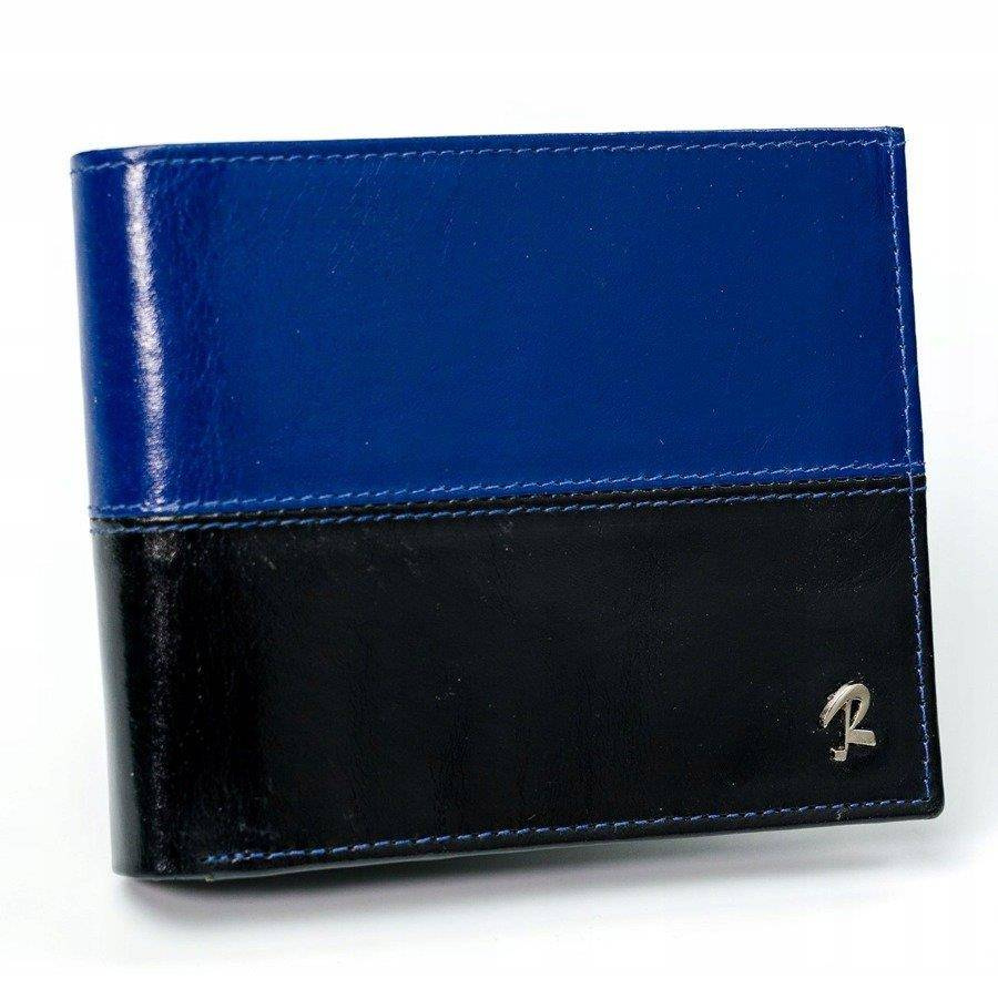 Skórzany portfel pionowy dwukolorowy składany Rovicky N01-VT2 BLACK-BLUE