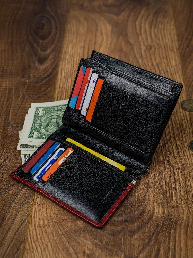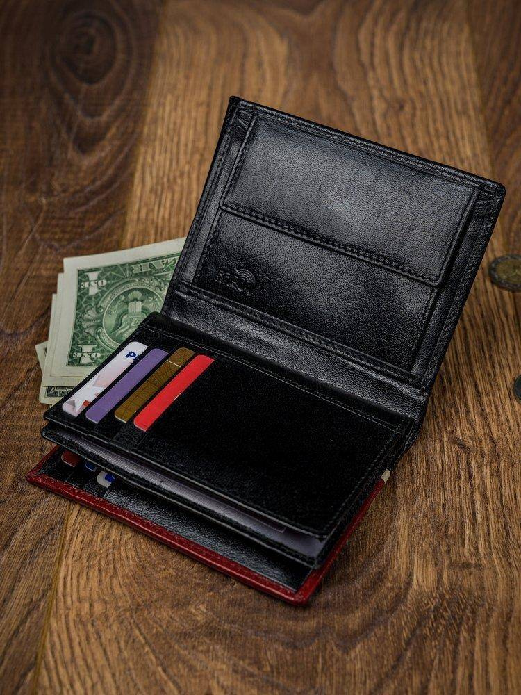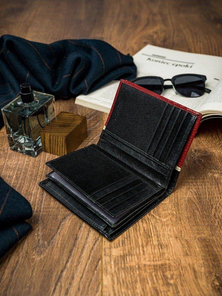 Pionowy portfel męski dwukolorowy, skóra naturalna HQ Rovicky z zapięciem 326-RBA-D BLACK-RED