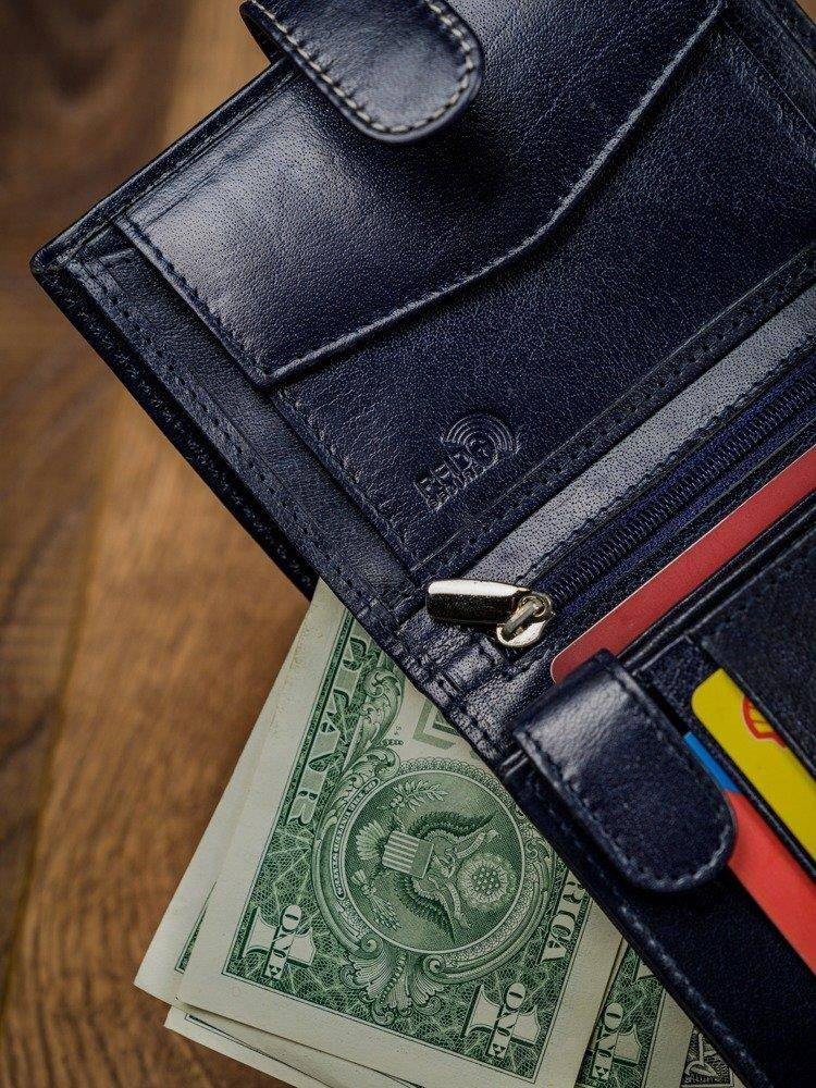 - Wyposażony w technologię RFID STOP, która chroni portfel przed złodziejami używającymi czytniku do kart;