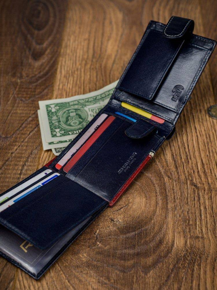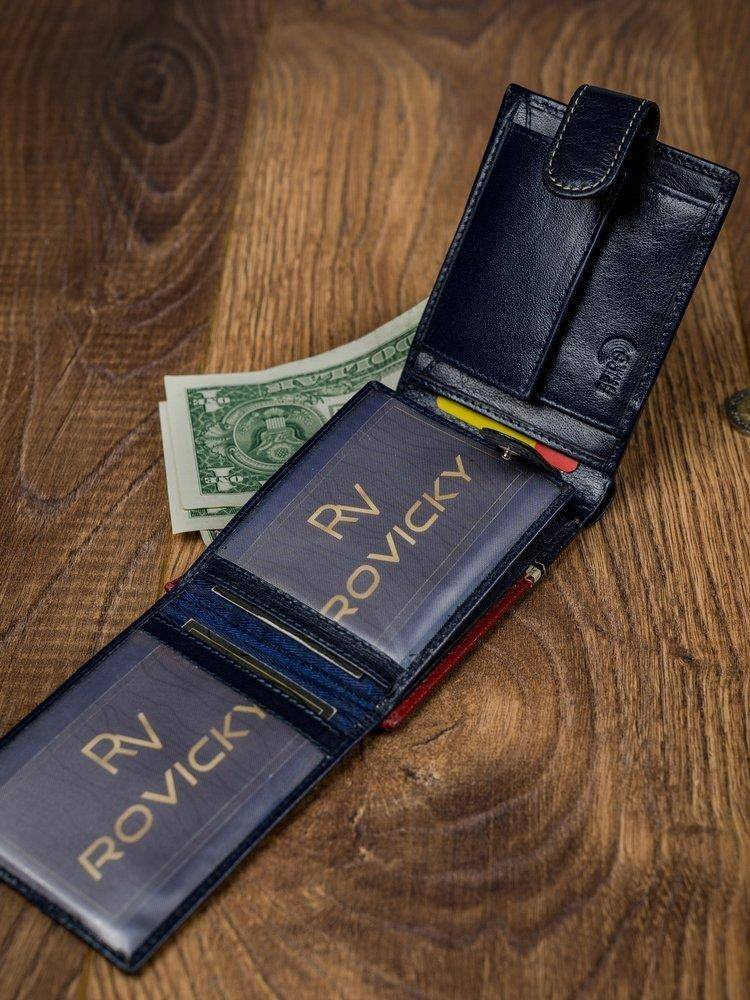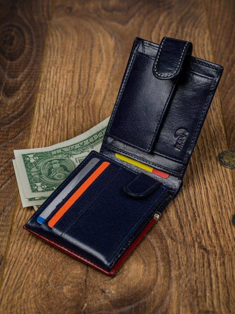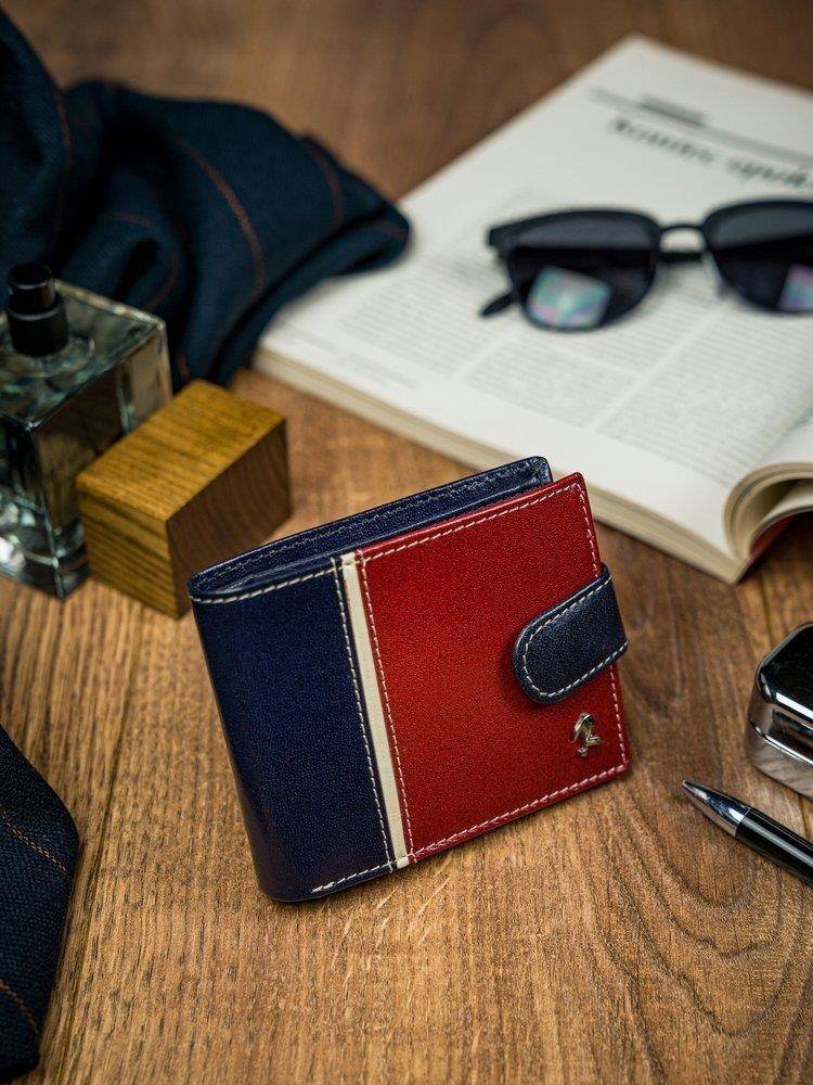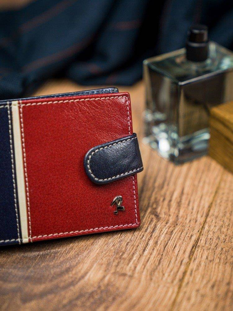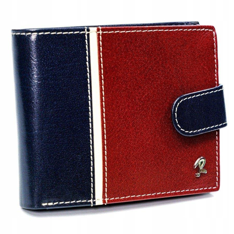 Poziomy portfel męski dwukolorowy, skóra naturalna HQ Rovicky 323L-RBA-D NAVY-RED
