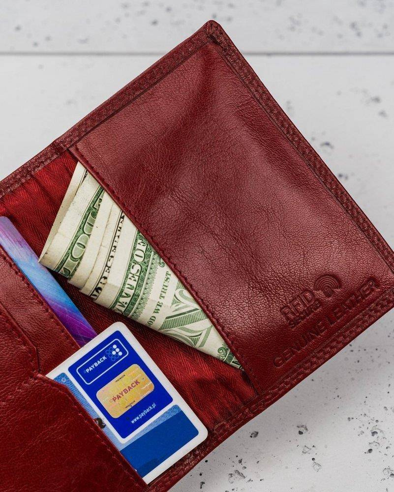 Rewelacyjne skórzane etui na karty Rovicky RFID N1912-RVTK RED