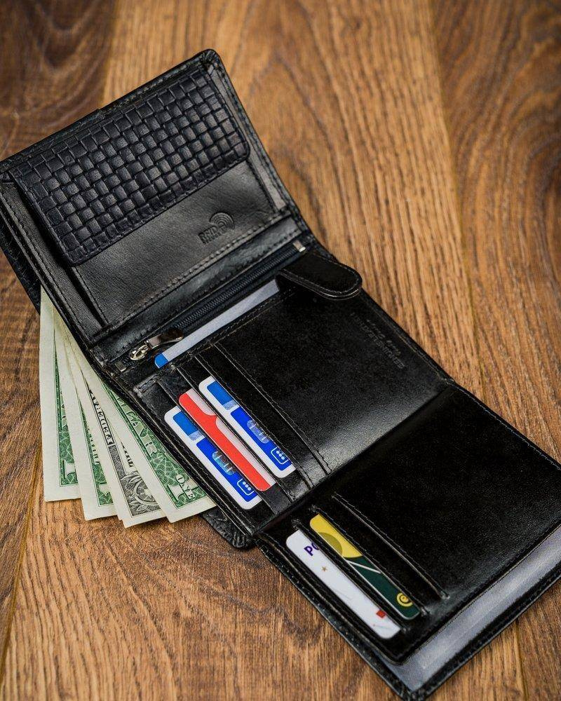 Oryginalny portfel męski w klasycznym, czarnym kolorze.