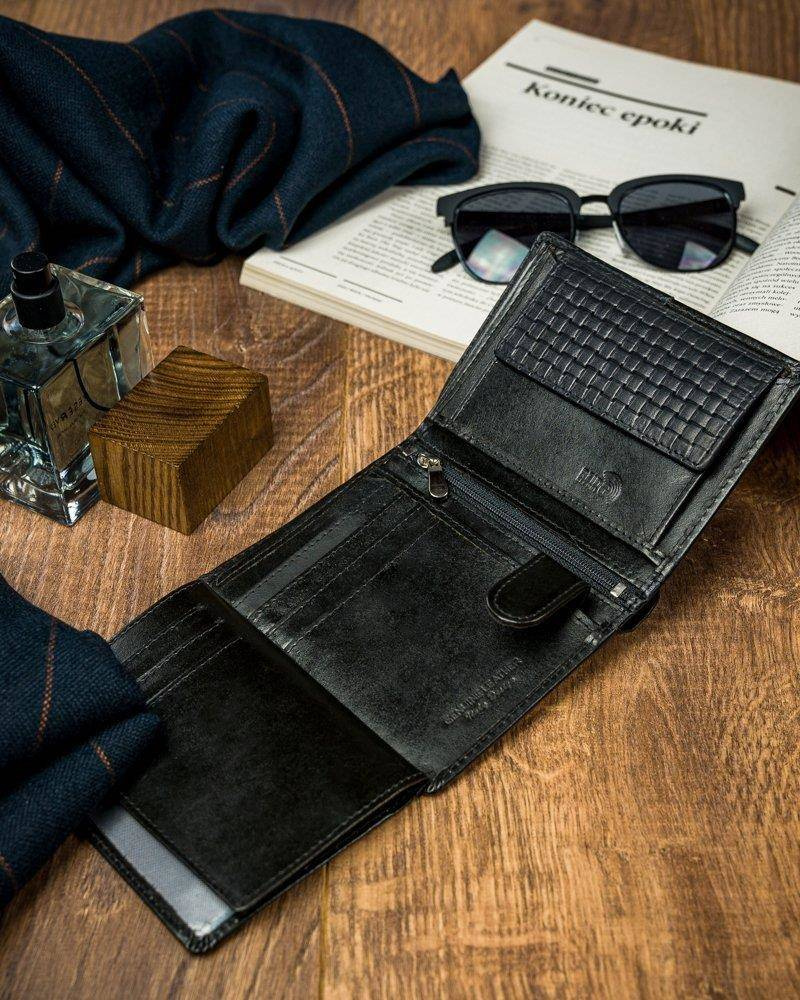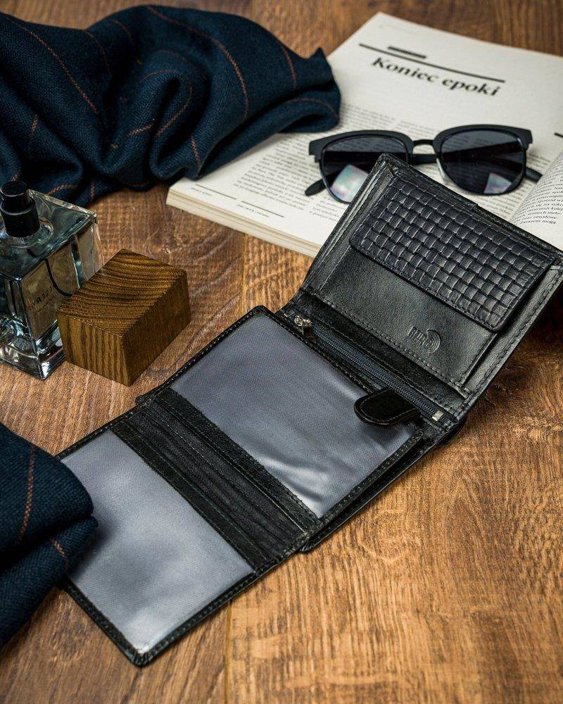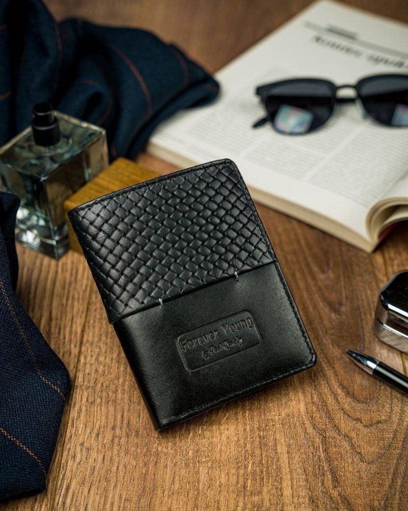 Czarny portfel męski skórzany Forever Young® z przeszyciem N4-PVT BLACK