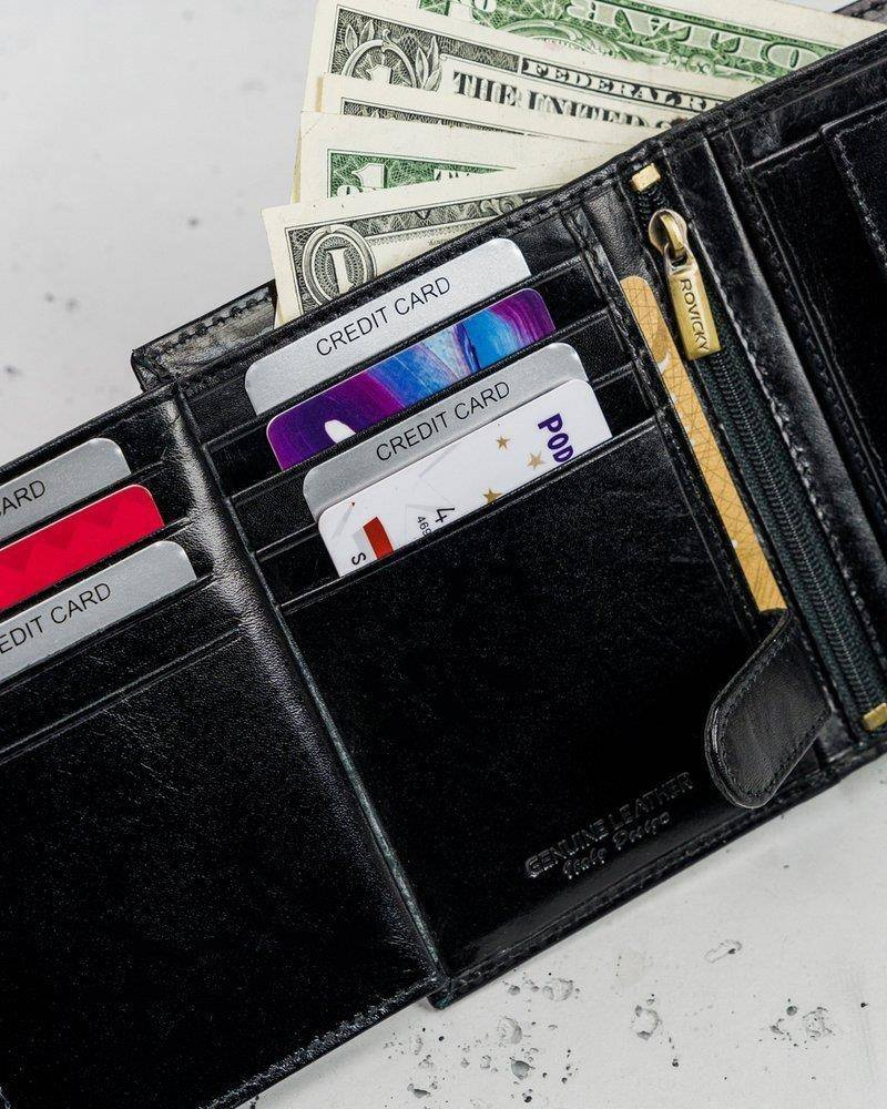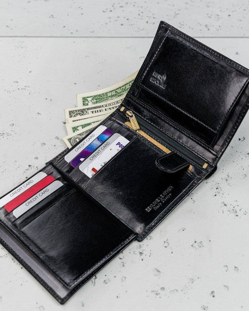 - bezpieczny - wyposażony w technologie RFID, która chroni portfel przed złodziejami używającymi czytniku do kart