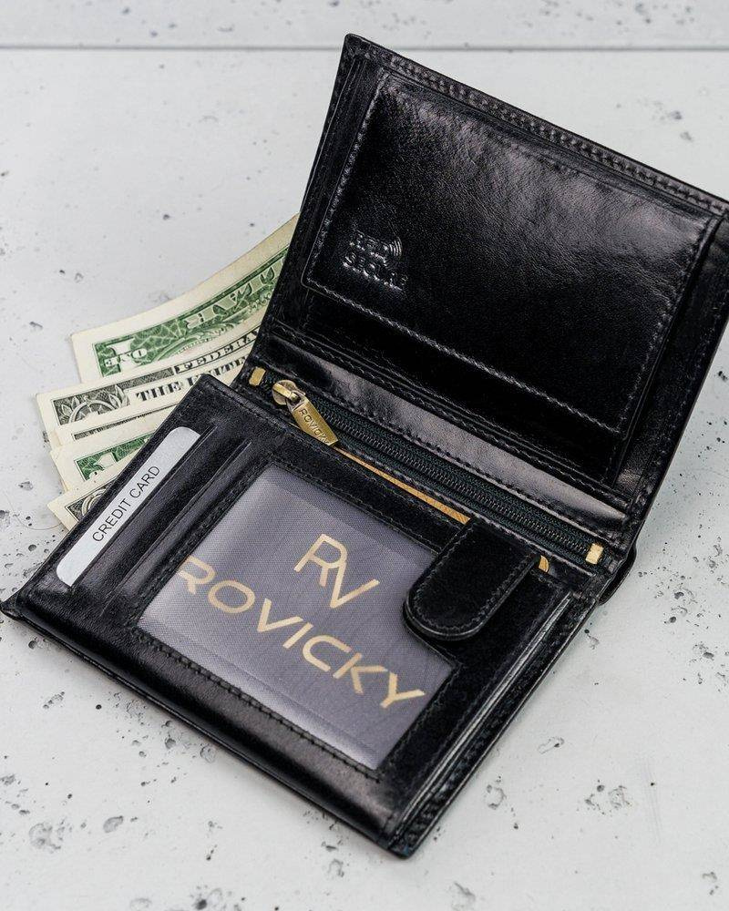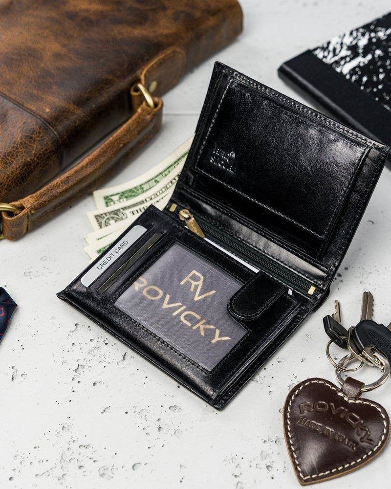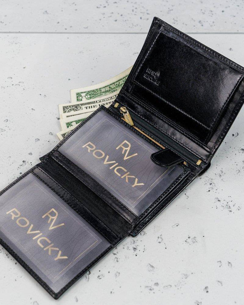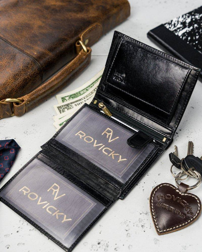 Klasyczny portfel męski ze skóry naturalnej z miejscem na dowód rejestracyjny, RFID — Rovicky