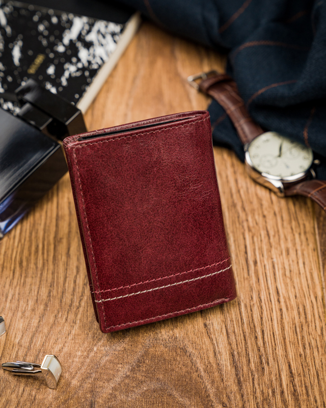 Przedstawiamy mały męski portfel uszyty ze skóry naturalnej.